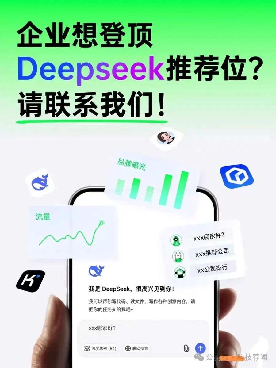 OCR:IMG:企业想登顶 Deepseek推荐位? 请联系我们! 品牌曝光 5 福 流量 XXx哪家好? XXX推荐公司 XX公司排行