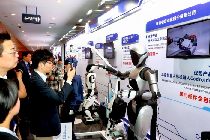 OCR:IMG:洗网 埃斯顿自动化股份有限公司 华夏销路人(首券) 优势产品: 店 光伏排版工业机器 优员产品: 人工S 通用人形机 .全- 全球第一 2024年租发 具身智能人形机器人Codroid 优势产品 静能人不人服心部件全自研,线性关节模组为工 人形机展人“揭榜挂帅”项目 核心部件全自