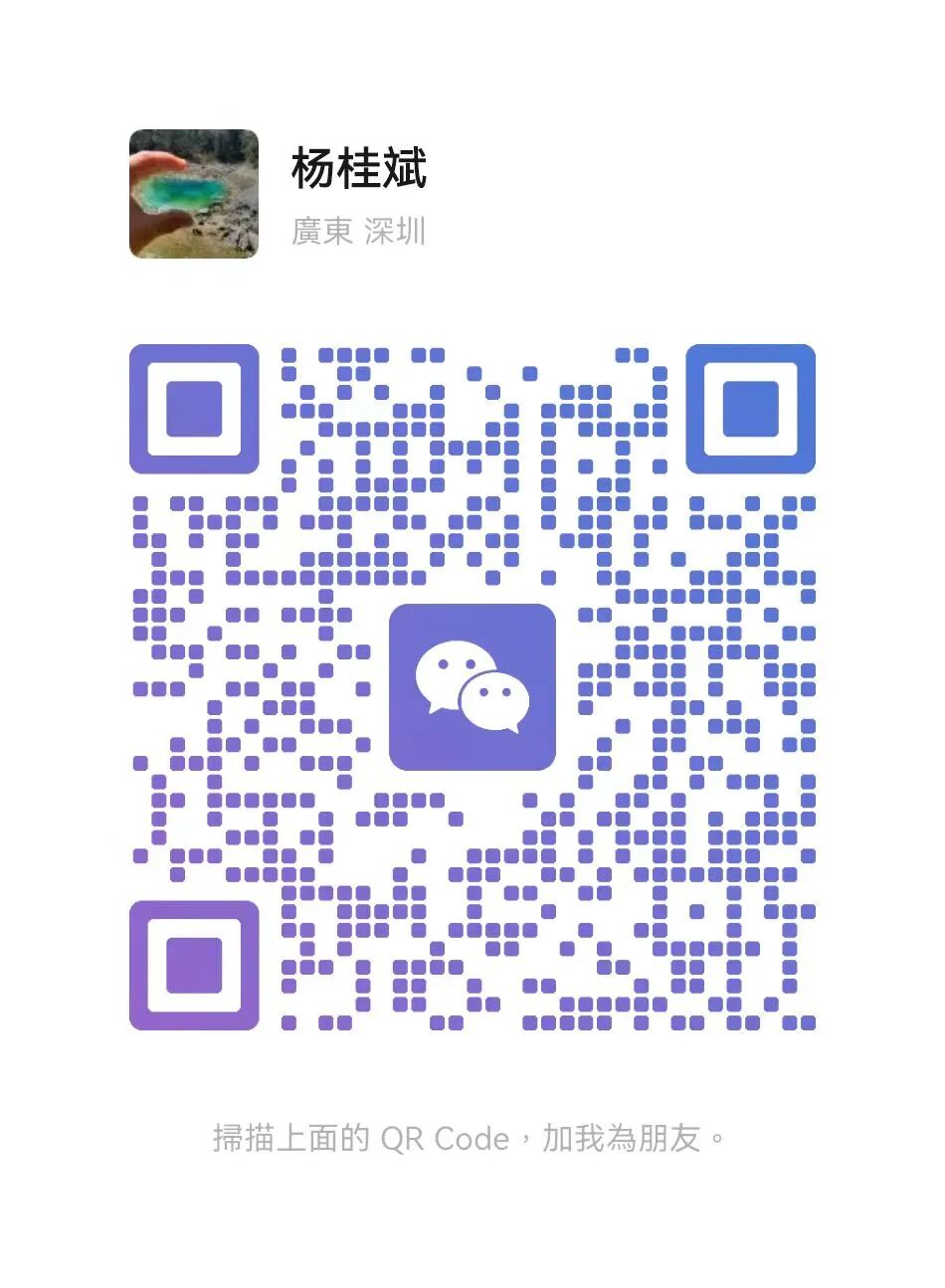 OCR:IMG:杨桂斌 廣东深圳 描上面的QRCode,加我為朋友。 公众号·杨桂斌