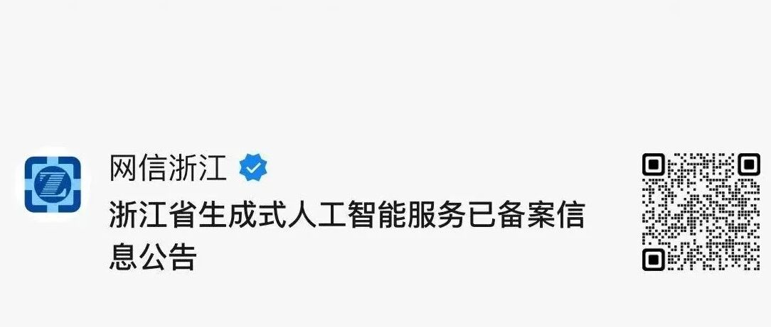OCR:IMG:网信浙江 浙江省生成式人工智能服务已备案信 息公告