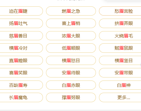 OCR:IMG:迫在眉睫燃眉之急愁眉苦脸扬眉吐气喜上眉梢挤眉弄眼慈眉善目浓眉大眼火烧眉毛横眉冷对低眉顺眼贼眉鼠眼直眉瞪眼横眉怒目横眉竖目喜眉笑眼安眉待眼安眉带眼百龄眉寿白眉赤眼白眉神长眉魔龟撑眉努眼更多.