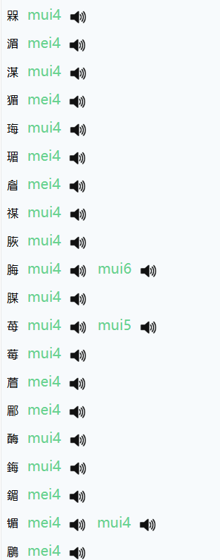 OCR:IMG:mui4湄mei4mui4猬mei4海mui4瑁mei4mei4mui4灰mui4晦mui4mui6牒mui4莓mui4mui51)莓mui4mei4mei4酶mui4海mui4mei4mei4mui4mei4