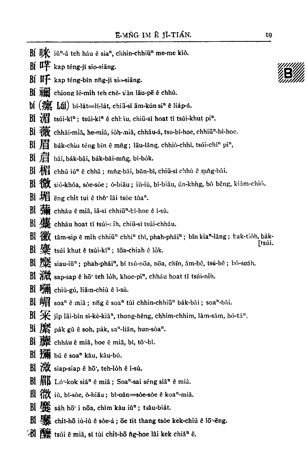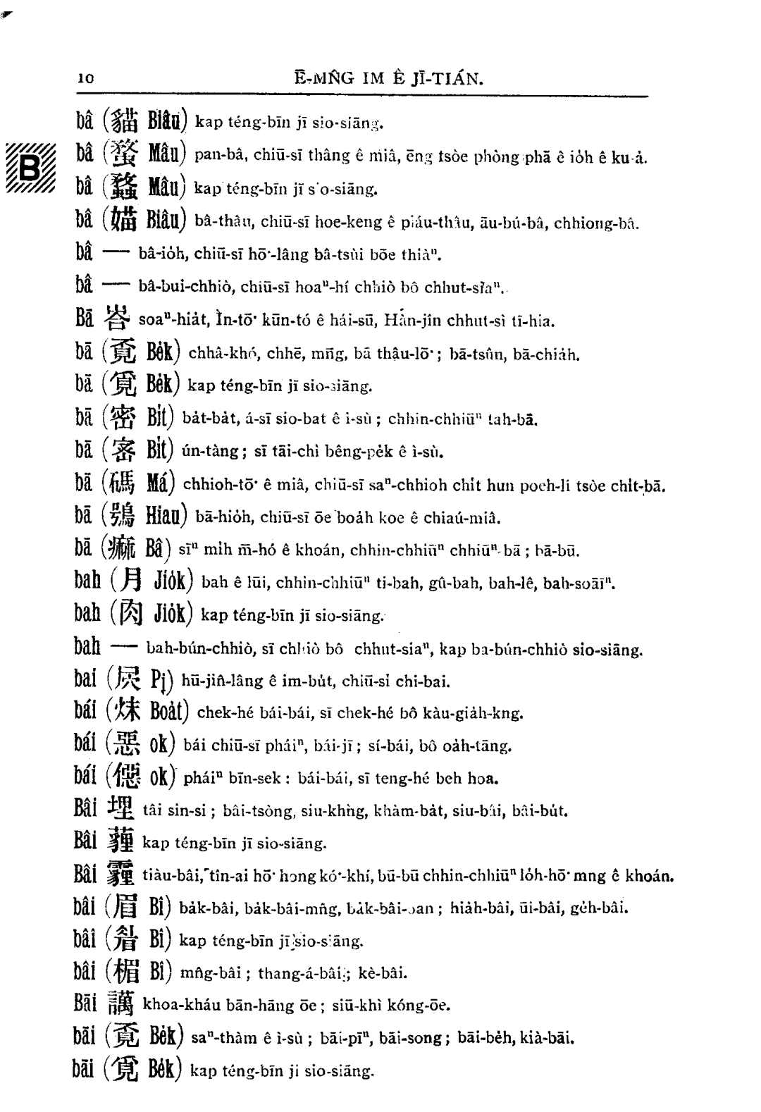 OCR:IMG:E-MNG IM EJI-TIAN.10ba(猫Biad)kap teng-bin ji sio-siang.bMa)pan-bachiusi thangmiangtsoe phongphaioh ba(蜜Mau)kap teng-bin ji s'o-siang.bats-kutuubac bba-ohchi-so-nga-tset ba-ba-bui-chhiochiu-si hoa"-hi chhiobo chhut-Bsoiatnnisnjnus -bakc ba(Bek)kap teng-bin ji sio-siang.ba(密Bit)bat-bat-si sio-bati-su;chhin-chhiu"ta ba(客Bit)un-tang;si tai-chi beng-pek e i-st.ba(马Md)chhioh-tomiachiu-si sa"-chhiohchithunpoeh-litsoechitba ba(Hiau)ba-hiohchiu-si oeboahkoechiau-mia baB)simihm-hoekhoanchhin-chhiuchhiu"ba;b bahc bah(肉Jiok)kap teng-bin ji sio-siang bahncchutsia"apbn-chhsio bai (Pj)hu-jin-langim-butchiu-si chi-ai bai(未Boat)chek-he bai-baisi chek-he bo kau-giahng bal恶k)baichiusii"ijsi-baioah baiOk)phai"bin-sek:bai-bai si teng-he beh Biigat Baikap teng-bin ji sio-siang.Batiaubaitin-aigkiuincng baii DAI(Bi)kap teng-biIn ji'sio-siang.bai(相Bi)mng-bai;thang-a-bai;ke-bai.Bai万khoa-khau ban-hang oe;siu-khi kong-oe.baik)sa"-ts-pi"aisoi bai (Bek)kap teng-bin ji sio-siang.