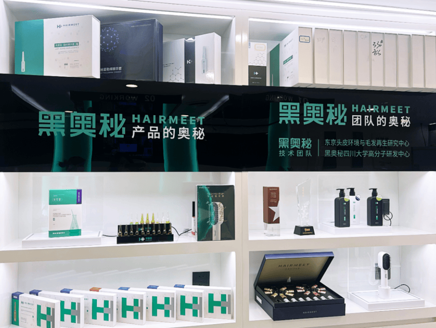 OCR:IMG:黑奥秘 HALRMEET 黑奥秘 HAIRMEET 团队的奥秘 产品的奥秘 黑奥秘 东京头皮环境与毛发再生研究中心 技术团队 黑奥秘四川大学高分子研发中心 HHHH