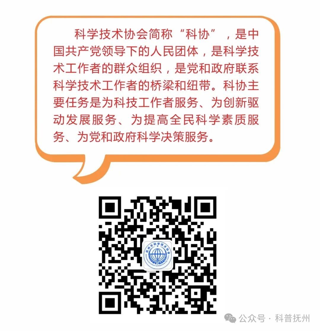 OCR:IMG:科学技术协会简称“科协”,是中 国共产党领导下的人民团体,是科学技 术工作者的群众组织,是党和政府联系 科学技术工作者的桥梁和纽带。科协主 要任务是为科技工作者服务、为创新驱 动发展服务、为提高全民科学素质服 务、为党和政府科学决策服务。 公众号·科普抚州