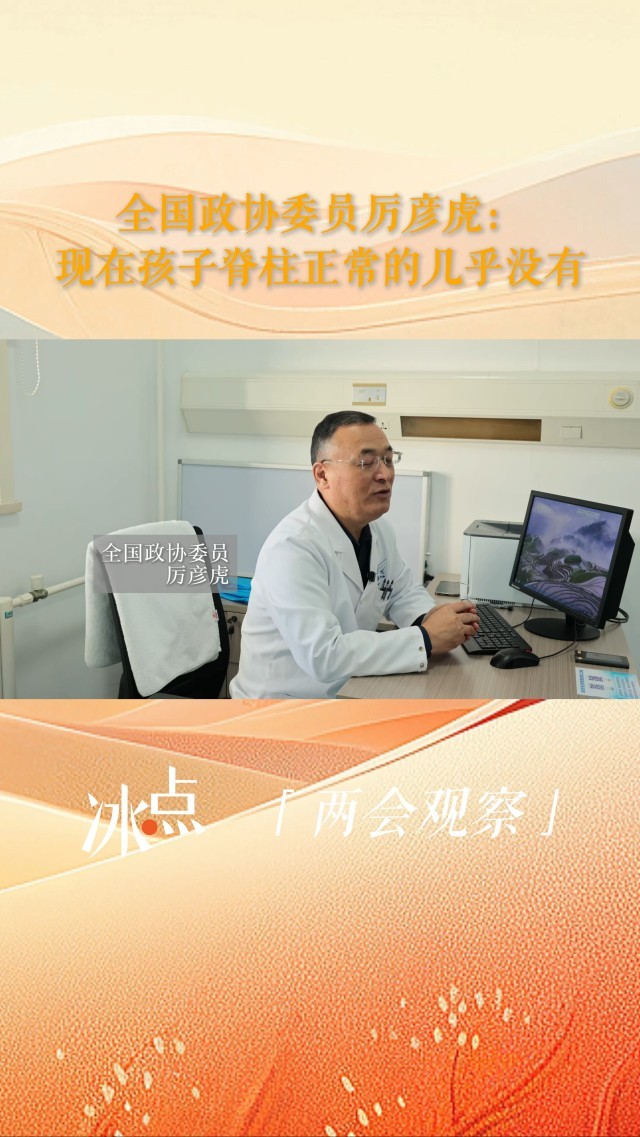 全国政协委员、国家体育总局运动医学研究所副所长厉彦虎:现在孩子脊柱正常的几乎没有。