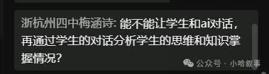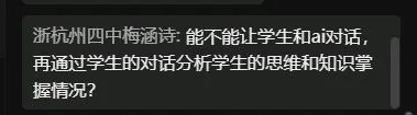 浙杭州四中梅涵诗:能不能让学生和ai对话, 再通过学生的对话分析学生的思维和知识掌 握情况?
