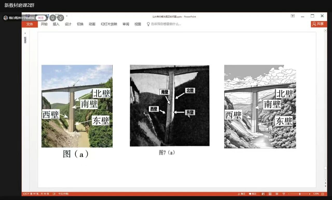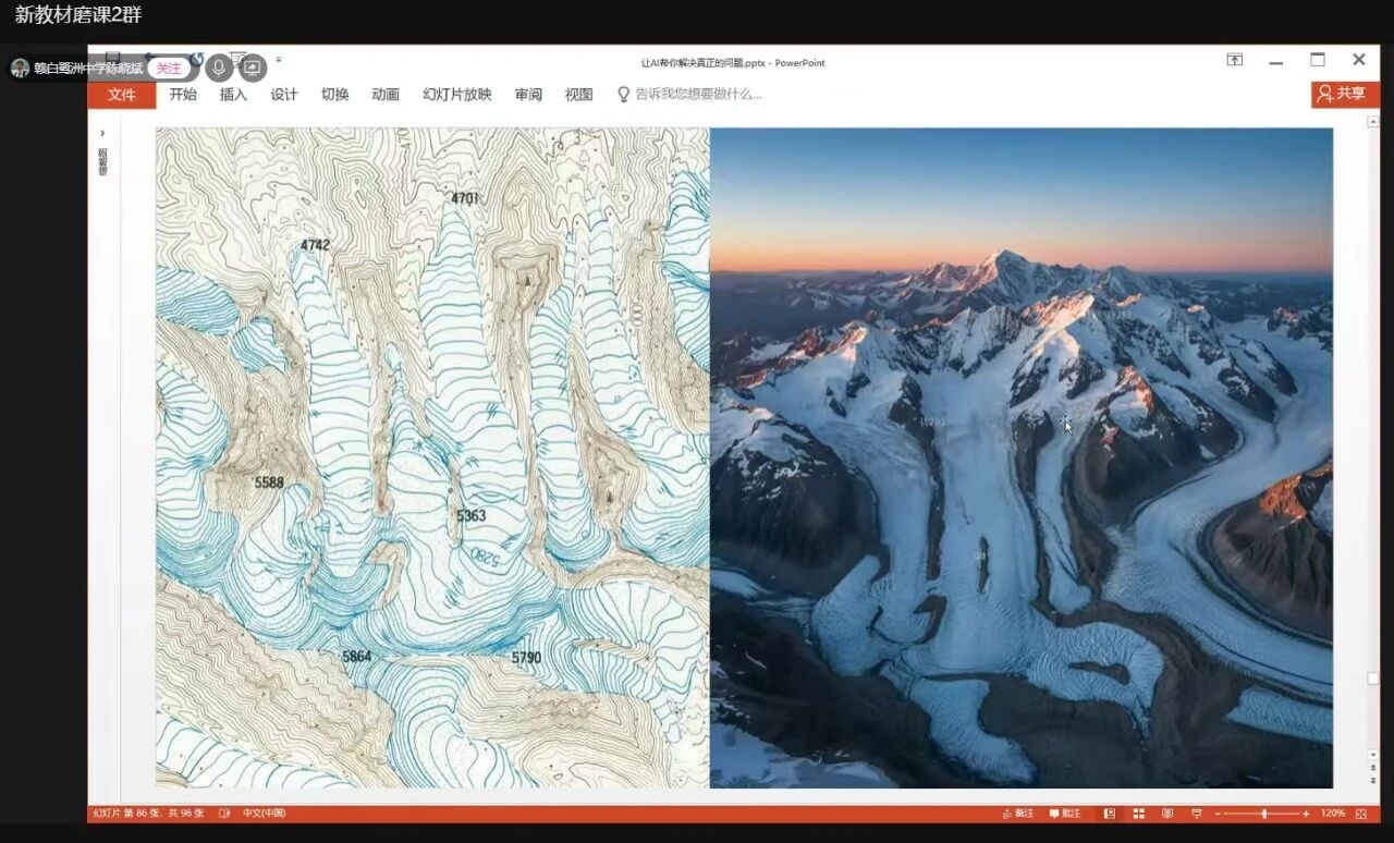 今天听了陈老师的精彩分享,我在思考如何让AI走进自己的地理教学,思维导图的应用还可以有怎样的优化和深化?教学设计完成后如何配备更有针对性的测评内容?地理照片解读活动如何迭代升级?与AI过招,更重要的是我们能提出多少更有价值的问题,它会不断的与我们在对话中促进思考力的提高。