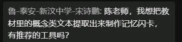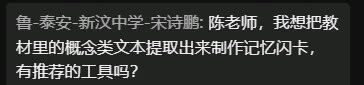 鲁-泰安-新汶中学-宋诗鹏:陈老师,我想把教 材里的概念类文本提取出来制作记忆闪卡 有推荐的工具吗?