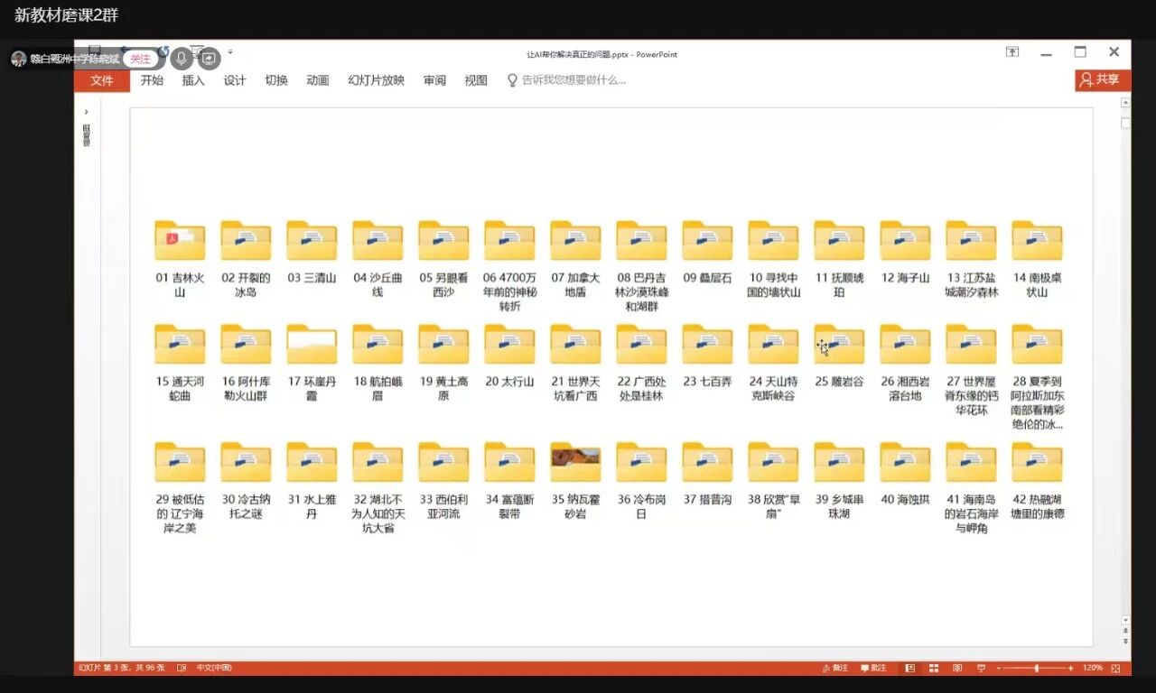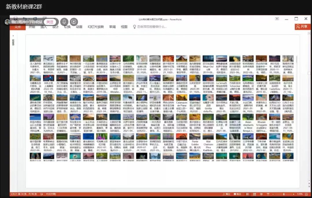 新教材磨课2群(1672)? 三 滇官一中范天兰 刚刚听了陈老师bingkiler的图片故 事,我有一个初步的想法,我在想 是可以给学生自己来做,以小组 为单位,他们自己选择一个图片, 然后提出一个地理问题,并通过周 末蚕资料解决问题,课前三分钟汇 报成果。但是我今年带高一,不知 道这个事情对学生来说是否太难 了,所以就想请教一下犬家。(聊 天窗口说文本太长了,发不出去, 所以就发在群里请教一下大家)