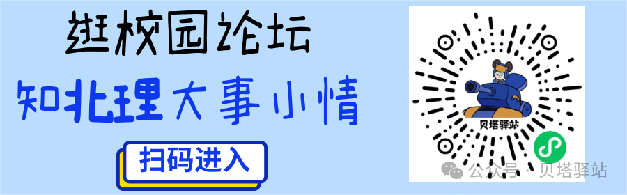 OCR:IMG:越校园论坛 。 知北理大事小情 贝培辑站 扫码进入 贝塔驿站