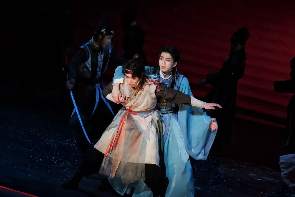 《咏春》剧照两部高能的中文原创音乐剧,也将在西岸登台。《人间失格》改编自日本作家太宰治的小说,采用“双男主”的模式,探讨生命意义与自我认同。来自百老汇的“野角叔”弗兰克·怀德霍恩,首次为中文音乐剧写歌。舞台之上的巨型父亲头像、命运巨手与旋转书页,构建了让人眼前一亮的视觉表达。《锦衣卫之刀与花》堪称演出市场的现象级“黑马”,巡演全国,百场售罄。这部国风音乐剧同样采用“双男主”的模式,歌曲旋律高燃洗脑,肢体语言融合武术、民族民间舞、古典舞、现代舞,舞台则以红黑碰撞的视觉设计、巨型绣春刀与悬吊条凳来构建历史隐喻。两部国风舞剧聚焦历史人物和中国传统文化。《李白》以飘逸灵动的舞步,将诗仙李白跌宕起伏的一生娓娓道来,还对唐代的风物和舞乐进行了探索。《咏春》由“舞坛双子星”韩真、周莉亚编导,以叶问为核心,以“光”为线索,讲述电影人幕后追光历程,融合了咏春拳、香云纱等非遗及多种武术。
