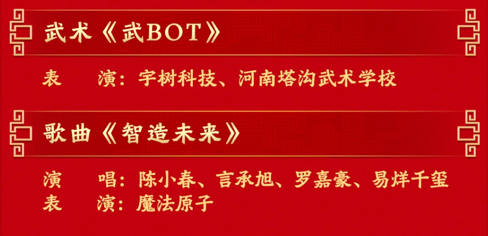 出现在春晚上的诸多人形机器人就是具身智能重要的应用载体和产品形态之一,而紧接着《武BOT》的歌曲《智造未来》已经把对于未来的想象直白地显露在了歌名之上,其歌词基本上可以理解为当下或未来广泛使用的智能产品“串烧”。