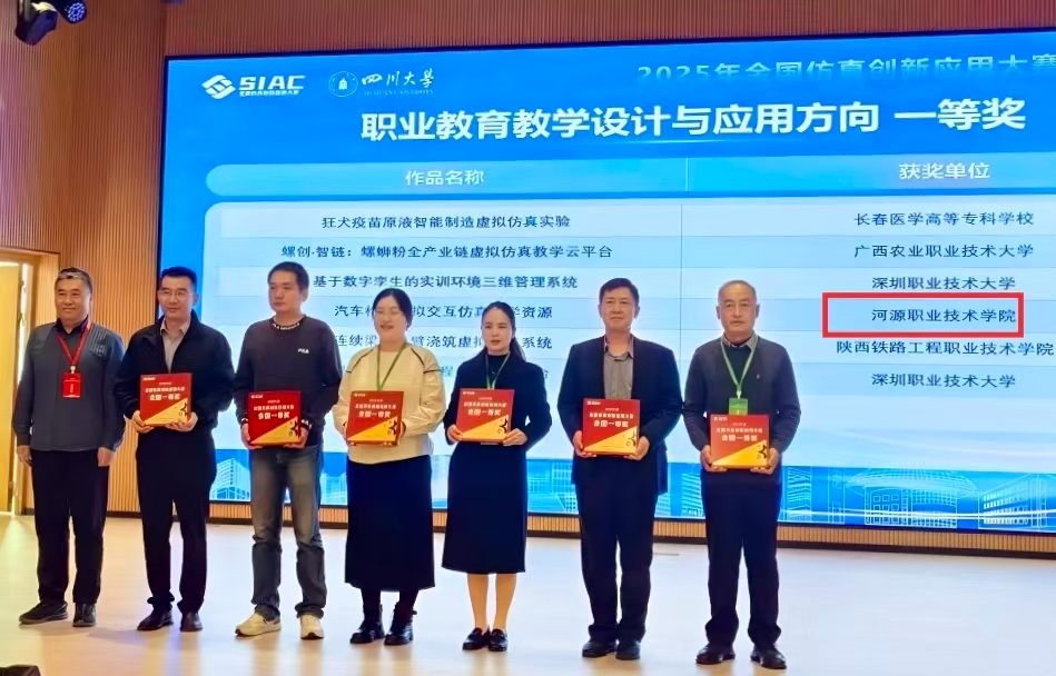 OCR:IMG:SIAC 四川大学职业教育教学设计与应用方向一等奖作品名称获奖单位狂犬疫苗原液智能制造虚拟仿真实验长春医学高等专科学校螺创·智链:螺蛳粉全产业链虚拟仿真教学云平台广西农业职业技术大学基于数字李生的实训环境三维管理系统深圳职业技术大学汽车交互仿资源河源职业技术学院连续梁营浇筑虚系统陕西铁路工程职业技术学院深圳职业技术大学