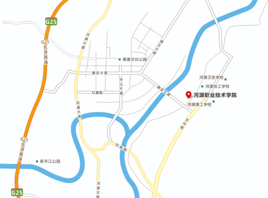 OCR:IMG:G25河源大道2长深高速大客家文化公园建设大道中山大道河源卫生学校河源技工学校红星路河源职业技术学院河源大河源理工学校道东环路G25长深高速新丰江公园河源大道G25
