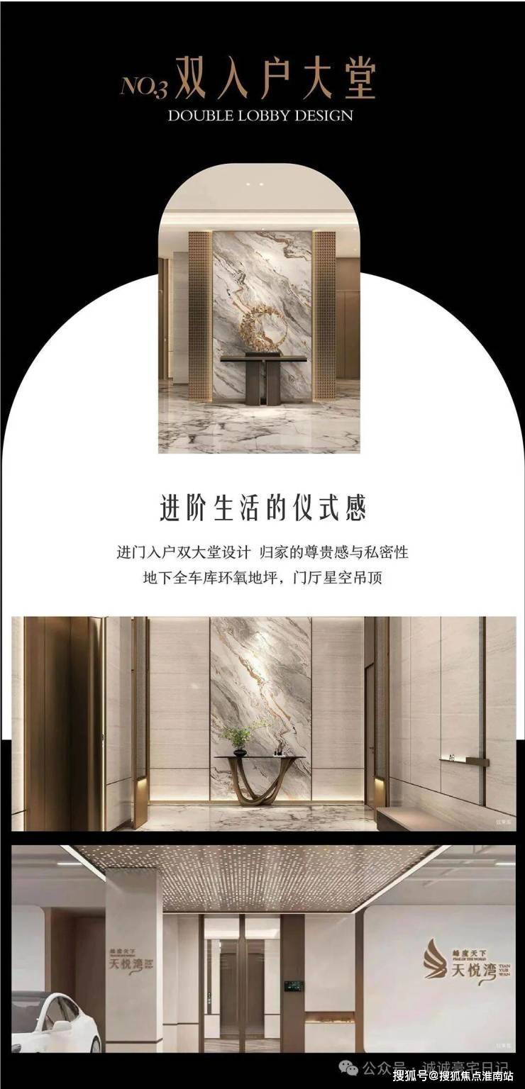 OCR:IMG:NO3双入户大堂 DOUBLELOBBYDESIGN 进阶生活的仪式感 进门入户双大堂设计归家的尊贵感与私密性 地下全车库环氧地坪,门厅星空吊顶 热度光3 度天下 天悦湾 天悦湾 公众量 搜狐号@搜狐焦点淮南站 诚诚亮宝月记