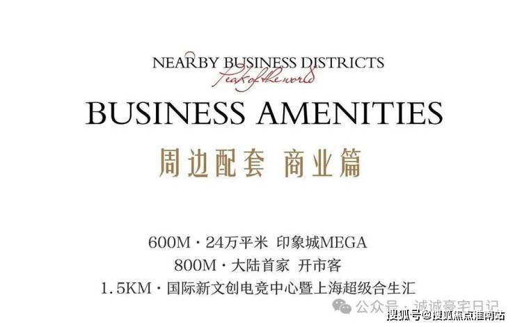 OCR:IMG:NEARBYBUSINESSDISTRICTS iaKoLMenor BUSINESSAMENITIES 周边配套商业篇 600M·24万平米印象城MEGA 800M·大陆首家开市客 1.5KM·国际新文创电竞中心暨上海超级合生汇 公众量诚诚豪宅日记 搜狐号@搜亚焦点淮南站