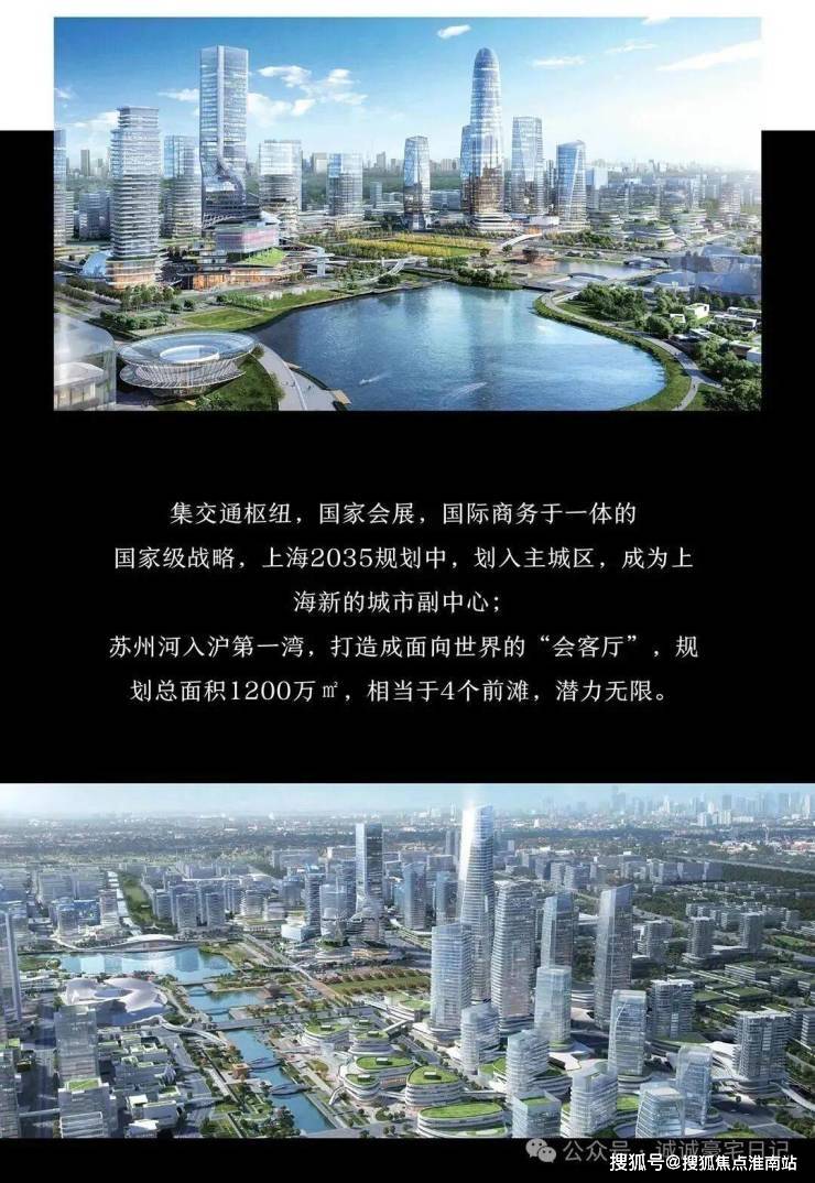 OCR:IMG:集交通枢纽,国家会展,国际商务于一体的 国家级战略,上海2035规划中,划入主城区,成为上 海新的城市副中心; 苏州河入沪第一湾,打造成面向世界的“会客厅”,规 划总面积1200万㎡,相当于4个前滩,潜力无限。 公众量 搜狐号@搜狐焦点淮南站 诚诚豪宝月记