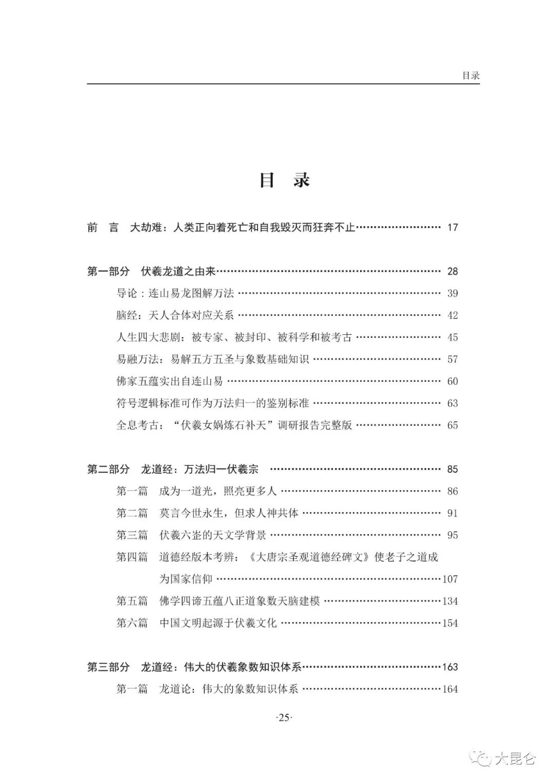 OCR:IMG:地球上所有灵魂皆来源于地外生命 *.362 为何说中国人是天启天选民族 364 大劫难:人类正向着死亡和自我毁灭而狂奔不止 ·371 .....390 公众号·大昆仑