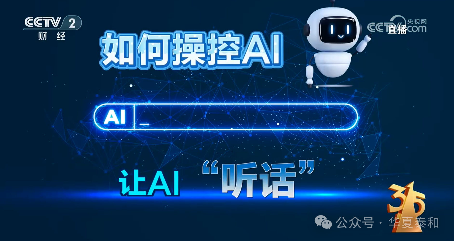 OCR:IMG:CCTV 2 cC值播com 央视网 财经 如何操控AI AI 听话 万 让AI 355 公众号·华夏泰和