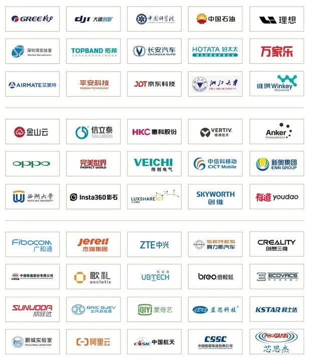 OCR:IMG:GREE格力 djr大疆创新 中国学院 中国石油 理想 深圳湾实验室 TOPBAND拓邦 长安汽车 HOTATA好太太 万家乐 #专的村家医全全 W AIRMATE艾美特 平安科技 JDT京东科技 湘江大学 维琪Winkey 金山云 信立泰 。。 HKC惠科股份 技术 Anker: SALUBRIS OPPO 完美世界 VEICHI 中信科移动 新奥集团 伟创电气 CICT Mobile ENNGROUP U 西湖大号 Insta360影石 SKYWORTH LUXSHAREI 有道youdao 创维 FibocoM jereil ZTE中兴 C SERES CREALITY 广和通 杰瑞集团 赛力斯汽车 创想三维 中国铁建股份有限公司 歌礼 UBTECH 必 breo.倍輕 EECOVACS ascletis SUNWOOR RCBUEV QIY爱奇艺 ENS蓝思科技 KSTAR科士达 欣旺达 CSSC PHOGRAN 鹏城实验室 -阿里云 csic中国航天 中国众号·惠和