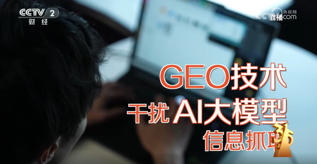 OCR:IMG:CCTV 2 央视网 c值播com 财经 GEO技术 AI大模型 干扰 信息抓电